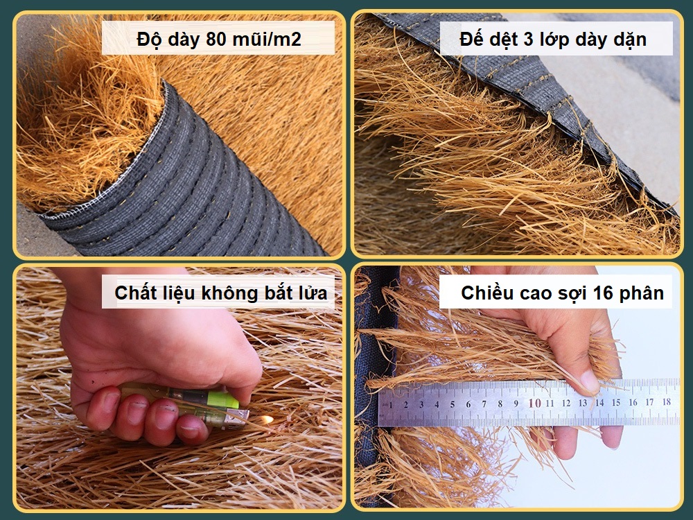 Trong khi đó cỏ rơm vàng nhân tạo cao cấp có: