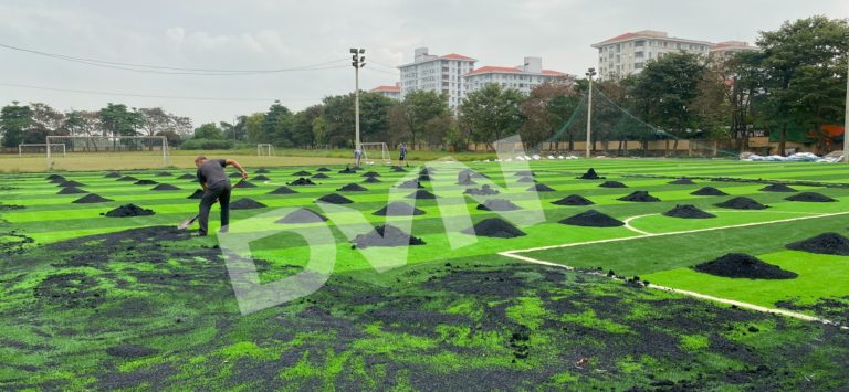 - Rải cát và hạt cao su giúp mặt sân ổn định.