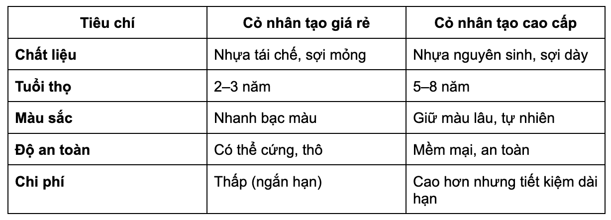4. So sánh cỏ nhân tạo cao cấp và cỏ nhân tạo giá rẻ